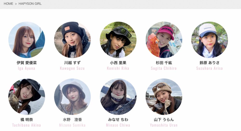 現在、ハピソン公式サイトに掲載されている釣りガールは以下の9名です。