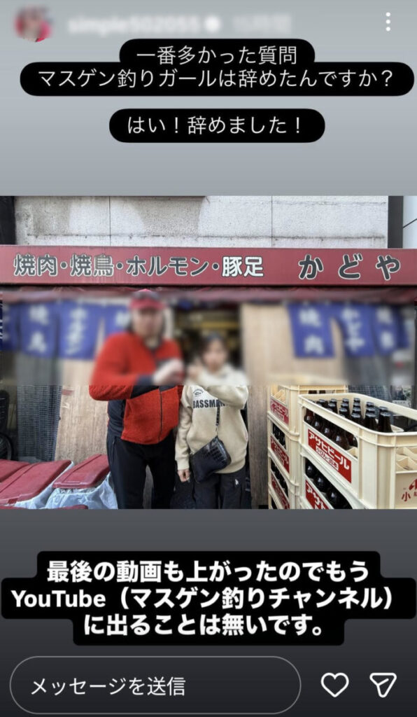 ナナたろがストーリでマスゲン釣りガールを辞めたとアップしたのは、2026年1月12日のこと。