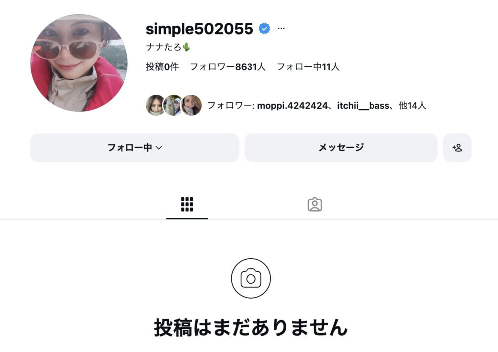 ななたろの、インスタをチェックしてみると、これまでの投稿はすべて削除されている。