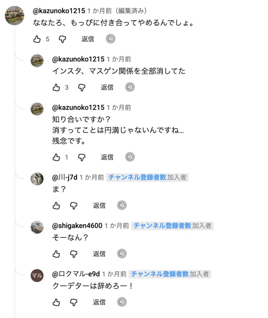 マスゲン釣りちゃんねるの年末の動画コメントには、既にななたろが辞めると言う情報が流出している状況を確認。