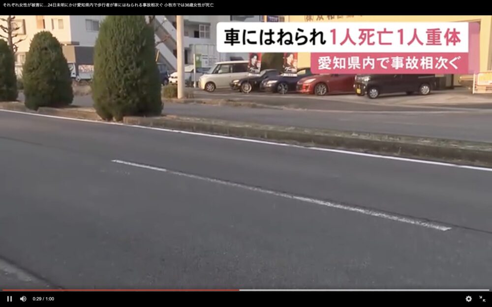 23日夜から24日未明にかけて、愛知県内で歩行者が車にはねられる事故が相次ぎ、1人が死亡、1人が重体です。
